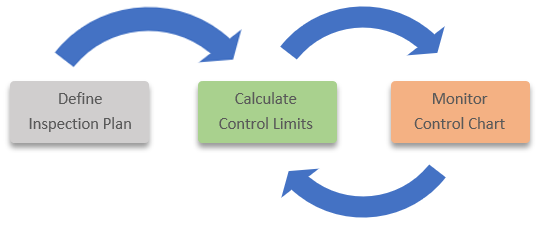 After a certain production period – around 2 weeks or up to 3 months, or a process or equipment change, the Control Limits need to be reviewed again to ensure the process is controlled within an acceptable limit.